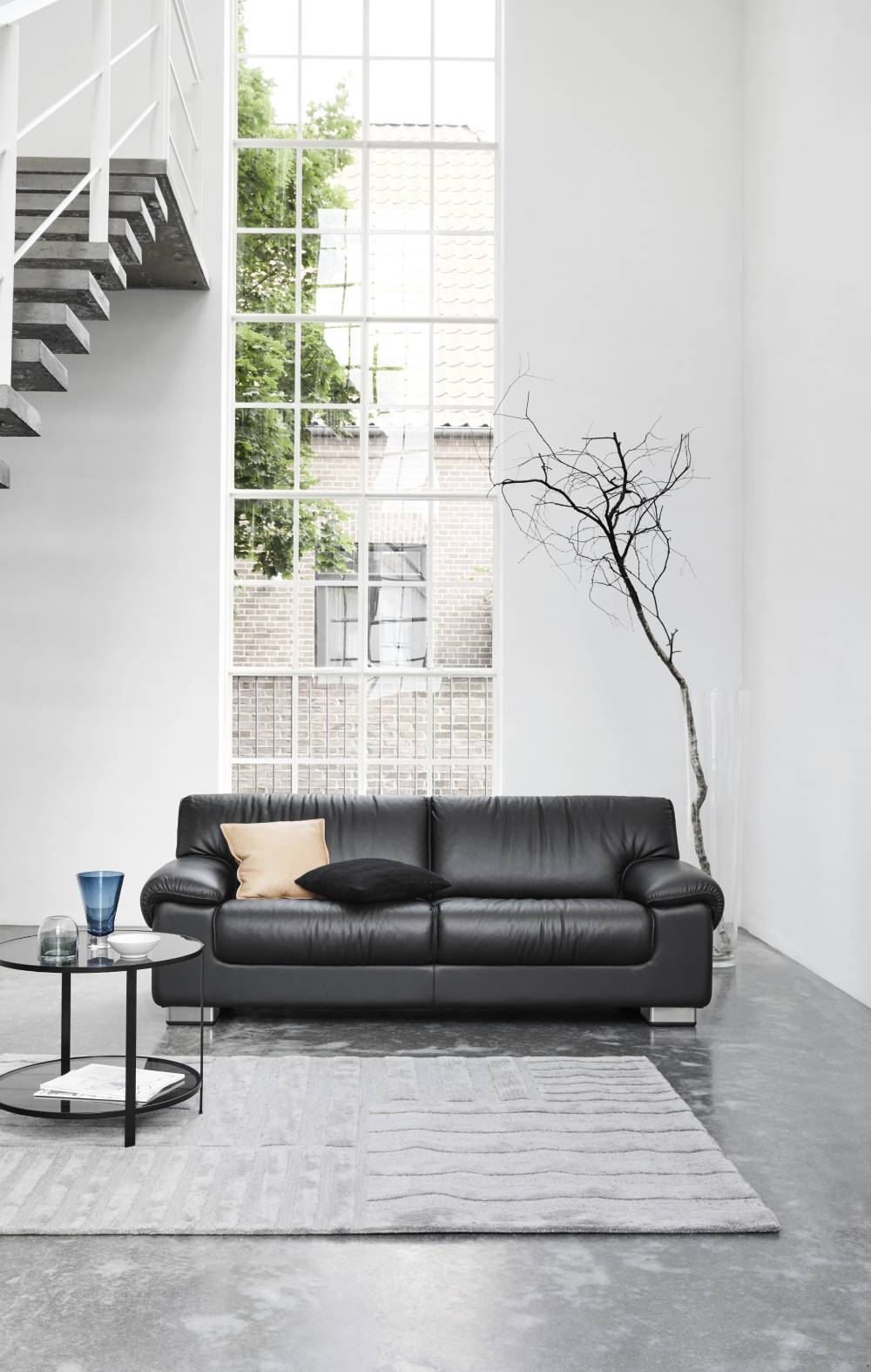 Rio fås som 3 pers. (233 cm), 2 pers. (203 cm), 2 pers. (173 cm) samt som en yderst rummelig stol, så kombinations- og indretningsmulighederne er mange. Vælg mellem ben i mat eller blankt krom.