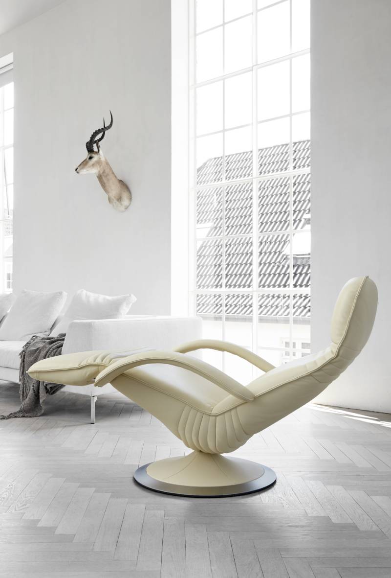 アームレストの下にあるボタンを軽く押すだけで、ゆっくりと椅子を後ろに傾け、リクライニングチェアの夢に変身させるスタイリッシュなアームチェア。 同時に、フットスツールが立ち上がり、脚とふくらはぎをサポートします。 体の重さは、とりわけ最大のレリーフが軽減されるように分散されています。 椅子は任意の位置で停止できます。 ヘッドレストは、シートの高さを+2または+4 cm調整できるのと同じように、背もたれの上部を前方に引くことで個別に調整できます。 ベースは10種類の木材、または革や布と組み合わせたマット/光沢のあるクロムで利用できます。